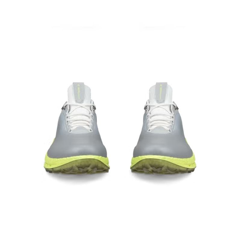 Phối màu trắng xám chủ đạo giúp golfer dễ dàng phối hợp với nhiều bộ trang phục khác nhau. Đặc biệt, các chi tiết in thể thao và logo tinh tế dọc thân giày khẳng định đẳng cấp của một dòng sản phẩm hiệu suất cao.